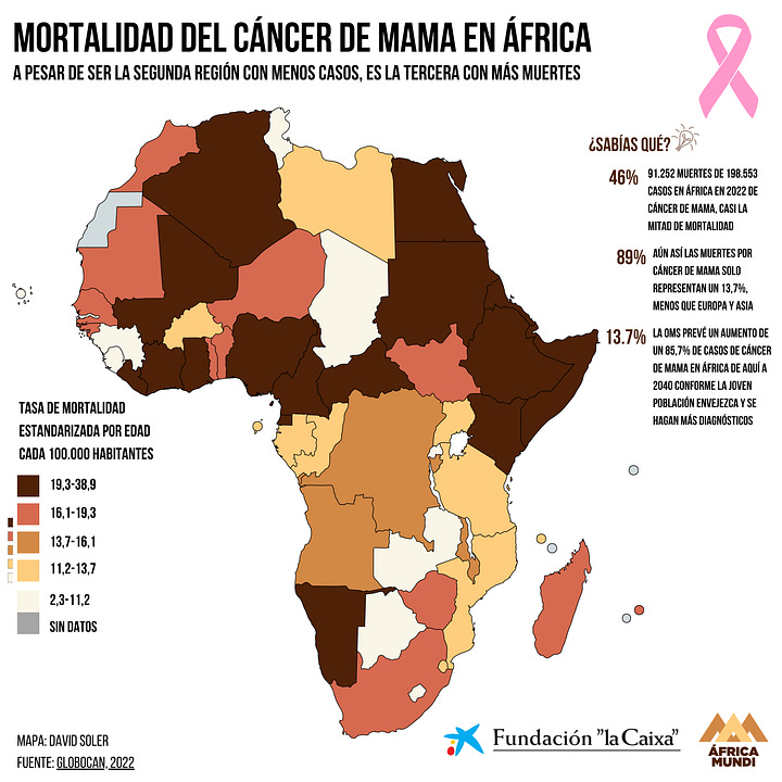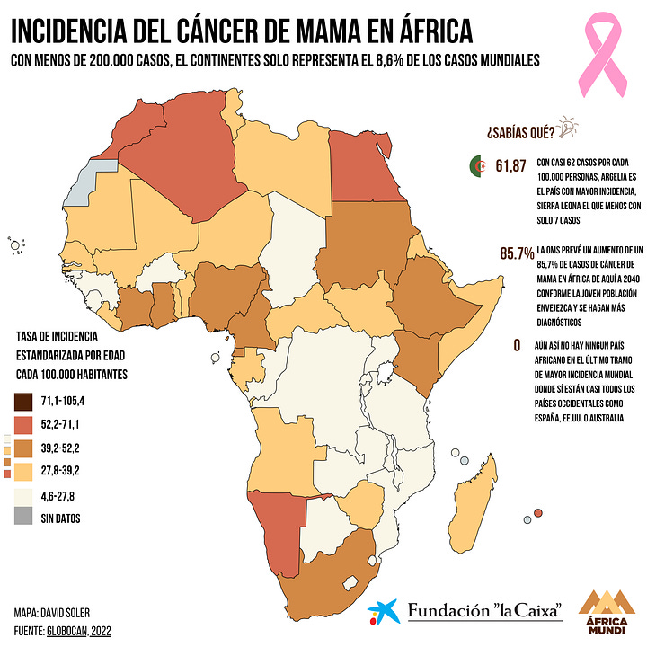Este domingo fue el Día Mundial contra el Cáncer de Mama y quisimos poner el ojo en el continente africano, uno de los continentes con menor incidencia pero con grandes diferencias entre países y sobre todo un dato: se espera que crezcan los casos un 86% y las muertes un 89% hasta 2040.