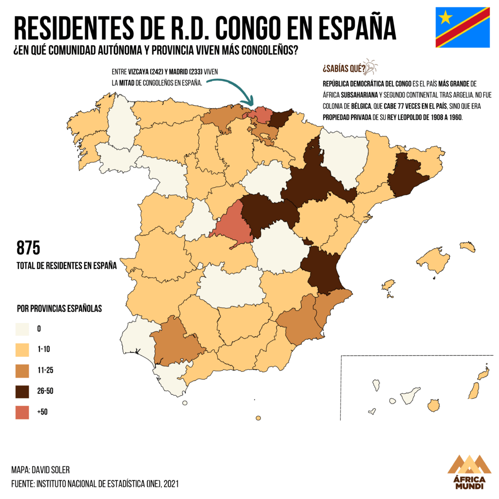 En España hay 875 congoleños, con su mayoría residiendo entre Vizcaya y Madrid.