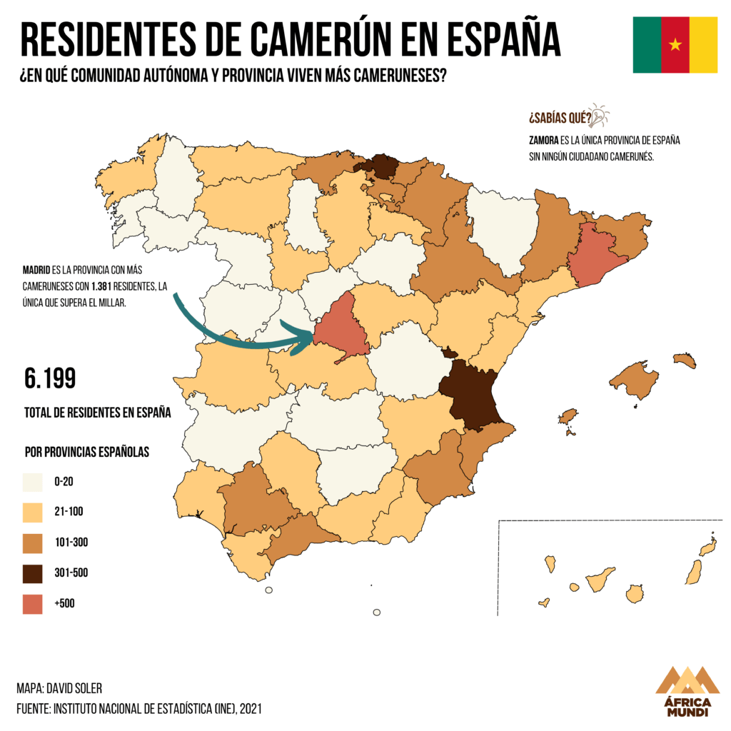 El país tiene también al presidente más longevo de África: Paul Biya. Este lleva ya casi 47 años en el poder y cuenta con 89 primaveras. El país además esta prácticamente en una guerra civil con las provincias del oeste del país anglófonas. En total en España hay 6.199 cameruneses y la mayoría se encuentran en Madrid con 1.381 residentes.