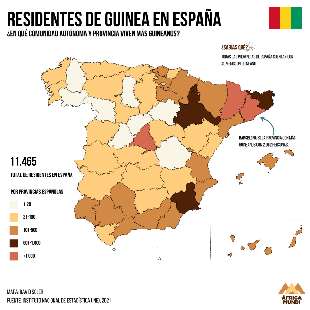 La República de Guinea es a día de hoy gobernada por una junta militar tras el golpe de Estado que quitó en 2021 del poder al expresidente y dictador, Alpha Condé. En España hay un total de 11.465 guineanos, la mayoría de los cuales se encuentra en Barcelona, Madrid y Lleida.