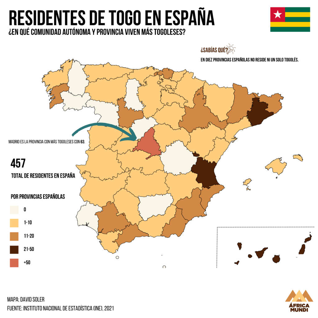 Un total de 457 togoleses viven en el país y Madrid acoge la mayor comunidad: tan solo 67 personas.