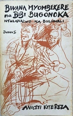 Bwana Myombekere na Bibi Bugonoka na ntulanalwo na bulihwali de Aniceti Kitereza (1945) es una novela única sobre la vida tradicional del pueblo Kerewe a lo largo de tres generaciones. Fue publicada por primera vez en suajili en 1980, pero originalmente había sido escrita en 1945 en kerewe, la lengua materna de Kitereza. Dado que ninguna editorial quería publicar una novela en kerewe, una lengua en peligro de extinción, el propio Kitereza la tradujo al suajili poco antes de su muerte, y transcurrieron 35 años hasta encontrar una editorial. Esta novela es la única escrita en kerewe y la más completa sobre la vida y las costumbres precoloniales publicada en una lengua africana.